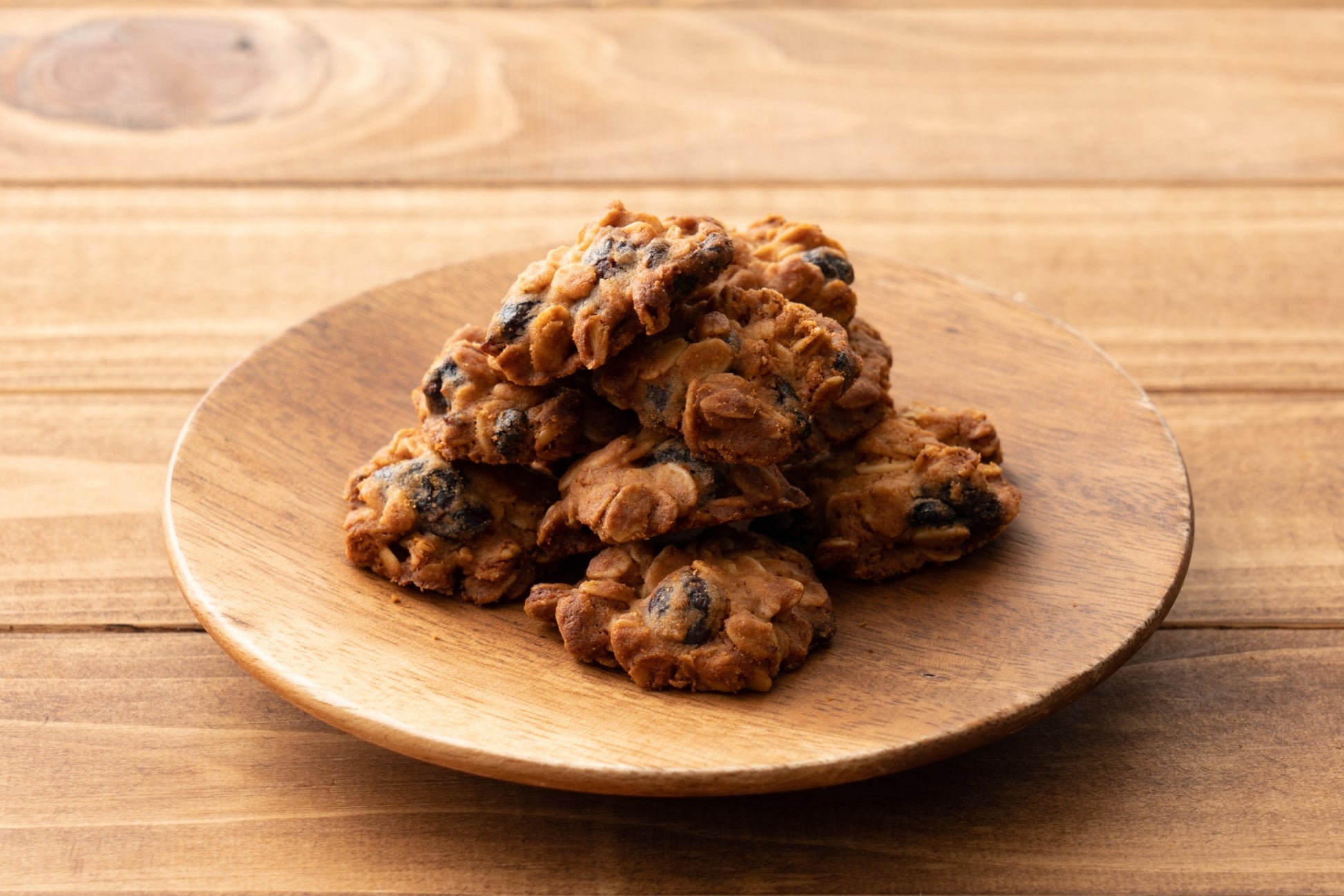 通常のクッキーと比べ、オートミールクッキーにはタンパク質や食物繊維がたっぷりと含まれています。さらに、サクサクとした食感があり、噛み応えがしっかりしています。たくさん嚙むことで少ない枚数でも満足感・満腹感を得やすくなります。