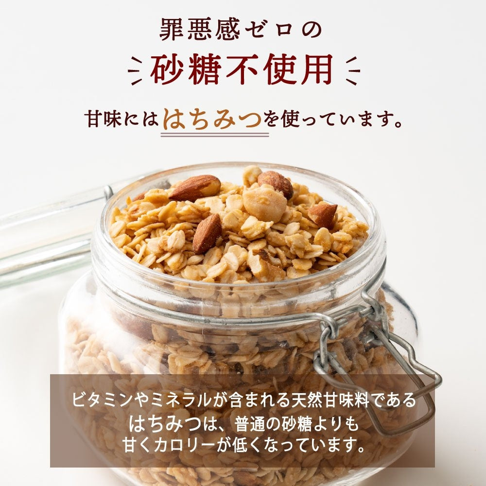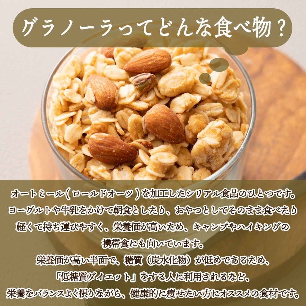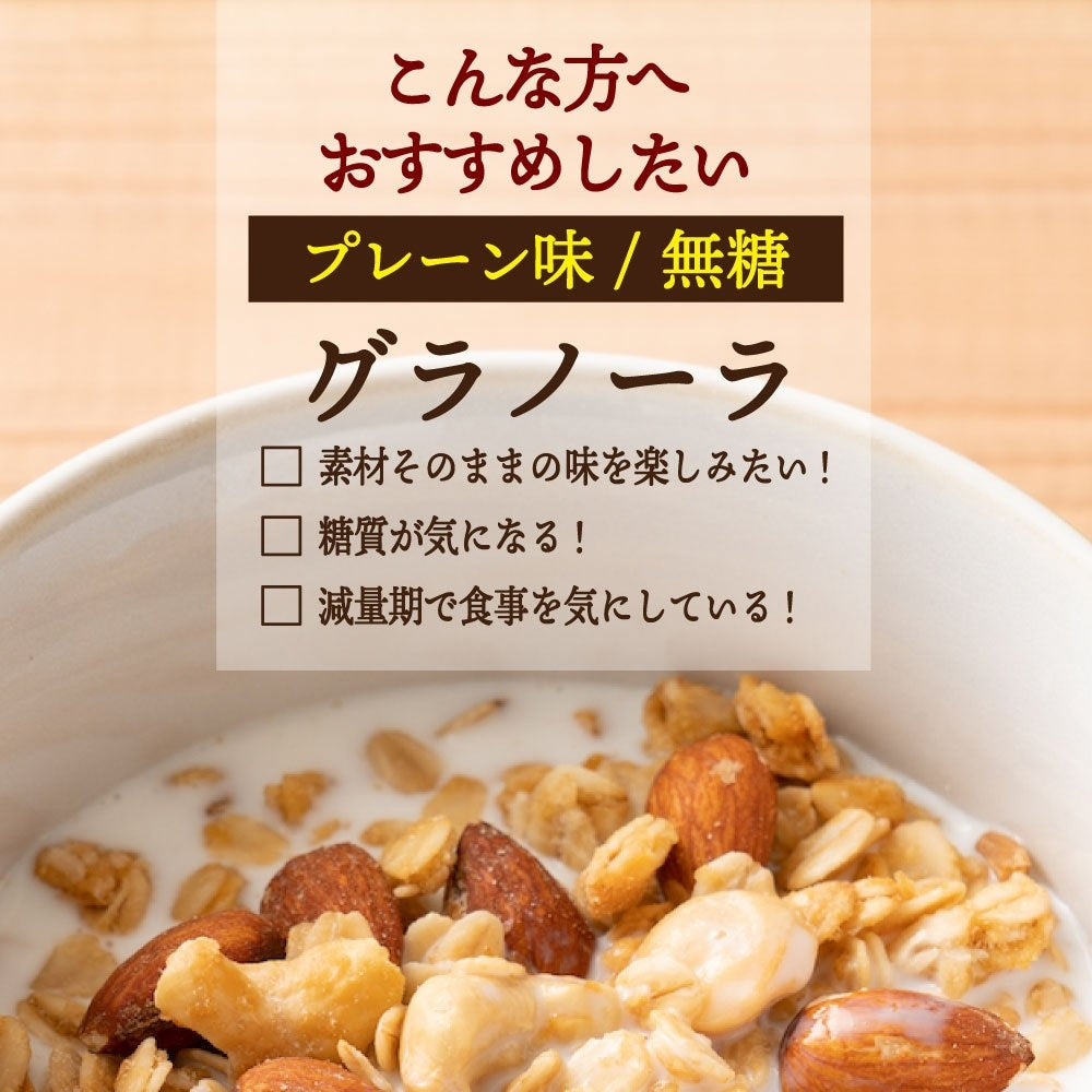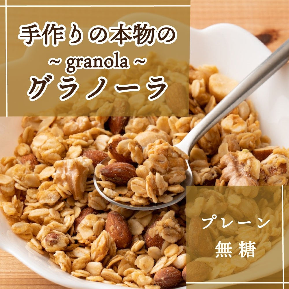 手作りグラノーラ【プレーン・砂糖不使用】(ミックスナッツ配合・チャック付き) | 「置き換え」で栄養チャージ良質なビタミン・脂質が摂れて栄養満点の砂糖不使用ダイエット食♪