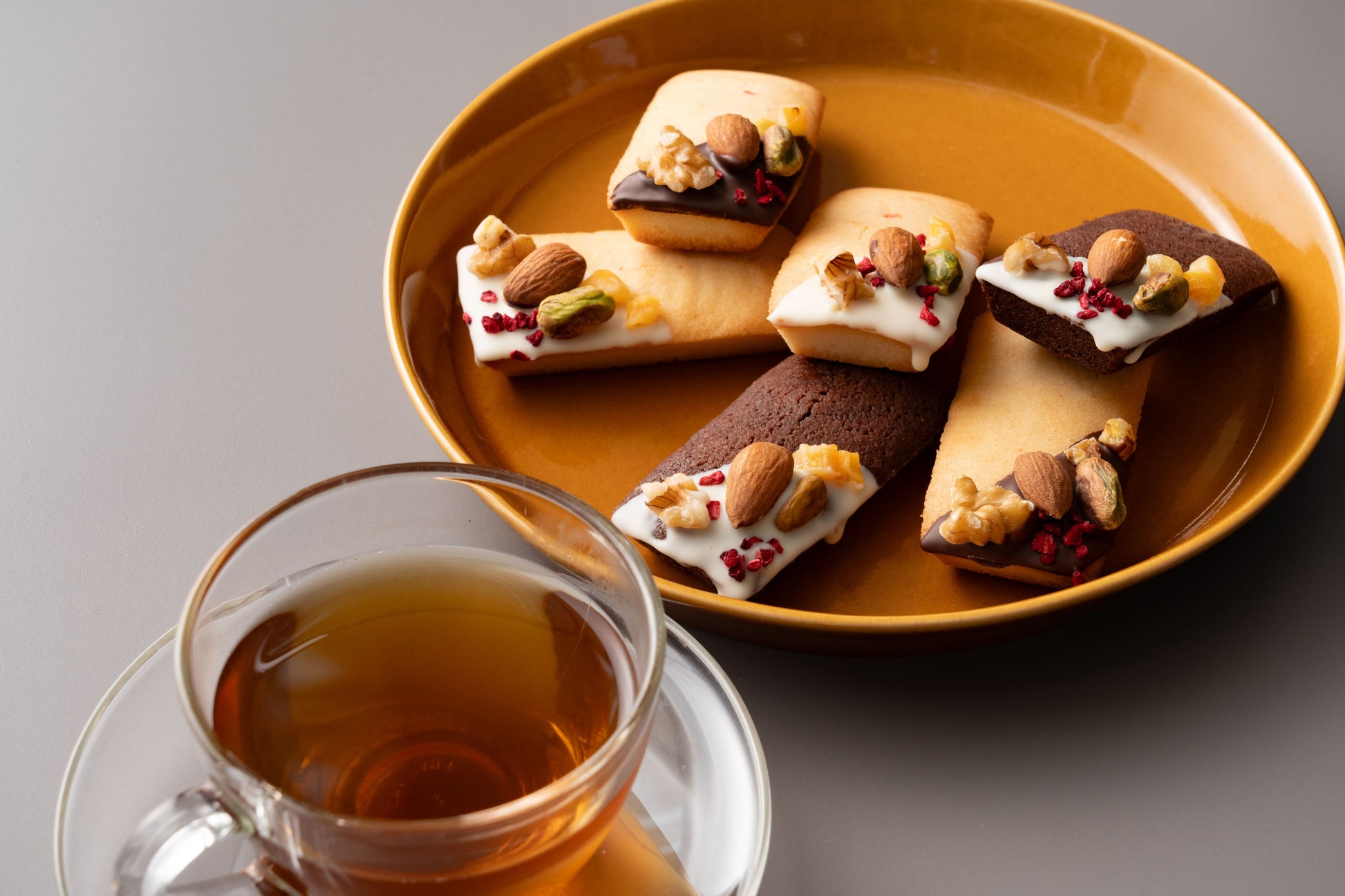 原材料名 国産卵()、砂糖、アーモンドプードル、バター、チョコレート(砂糖、植物油脂、ココアパウダー、カカオマス)、米粉、アーモンド、オレンジピール、(オレンジピール、ぶどう糖果糖液糖、砂糖)、ピスタチオ、くるみ、乾燥フランボワーズ/乳化剤、香料、漂白剤(亜硫酸塩)、(一部に卵・乳成分・くるみ・大豆・アーモンド・オレンジを含む) デコレーション フィナンシェプレーン(ホワイトチョコ) 原材料名 卵(国産)、砂糖、アーモンドプードル、バター、ホワイトチョコレート(植物油脂、砂糖、全粉乳、ココア、ココアバター、脱脂粉乳)、米粉、アーモンド、ピスタチオ、オレンジピール、(オレンジピール、ぶどう糖果糖液糖、砂糖)、くるみ、乾燥フランボワーズ/乳化剤、香料、漂白剤(亜硫酸塩)、(一部に卵・乳成分・くるみ・大豆・アーモンド・オレンジを含む) デコレーションフィナンココアシェ(スィートチョコ ) 原材料名 卵(国産)、砂糖、アーモンドプードル、バター、チョコレート(砂糖、植物油脂、ココアパウダー、カカオマス)、米粉、アーモンド、ココア、オレンジピール(オレンジピール、ぶどう糖果糖液糖、砂糖)、ピスタチオ、くるみ、乾燥フランボワーズ/乳化剤、香料、漂白剤(亜硫酸塩)、(一部に卵・乳成分・くるみ・大豆・アーモンド・オレンジを含む) デコレーションフィナンシェ ココア(ホワイトチョコ) 原材料名 卵(国産)、砂糖、アーモンドプードル、バター、ホワイトチョコレート(植物油脂、砂糖、全粉乳、ココア、ココアバター、脱脂粉乳)、米粉、アーモンド、ココア、オレンジピール(オレンジピール、ぶどう糖果糖液糖、砂糖)、ピスタチオ、くるみ、乾燥フランボワーズ/乳化剤、香料、漂白剤(亜硫酸塩)、(一部に卵・乳成分・くるみ・大豆・アーモンド・オレンジを含む)・アレルギー表示:卵・乳成分・くるみ・大豆・アーモンド・オレンジ・お召し上がり方:そのままお召し上がりください。・その他商品仕様: 栄養成分表示(1個当たり) デコレーションフィナンシェプレーン(スィートチョコ) エネルギー 164kcl たんぱく質 2.8g 脂質 12.3g 炭水化物 10.1g 食塩相当量 0.01 g デコレーションフィナンシェプレーン(ホワイトチョコ) エネルギー 167kcl たんぱく質 3.0g 脂質 12.7g 炭水化物 11.5g 食塩相当量 0g デコレーションフィナンシェココア(スィートチョコ) エネルギー 155kcl たんぱく質 2.8g 脂質 11.2g 炭水化物 9.9g 食塩相当量 0.01g デコレーションフィナンシェココア(ホワイトチョコ) エネルギー 157kcl たんぱく質 3.0g 脂質 11.5g 炭水化物 11.5g 食塩相当量 0.01g・注意事項:時間を日光・高温多湿を避けて保存してください