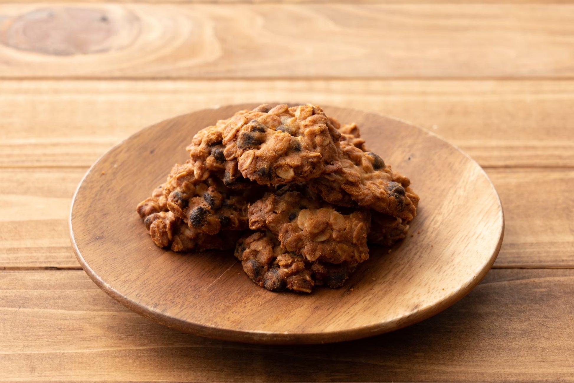 通常のクッキーと比べ、オートミールクッキーにはタンパク質や食物繊維がたっぷりと含まれています。さらに、サクサクとした食感があり、噛み応えがしっかりしています。たくさん嚙むことで少ない枚数でも満足感・満腹感を得やすくなります。